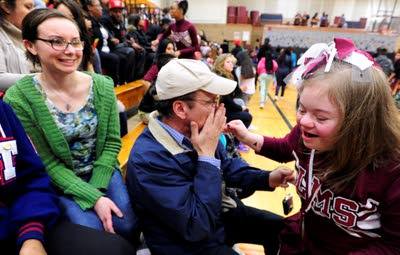 That fourth picture shows her dad, Cliff, wiping away tears after the gym was renamed for his daughter.