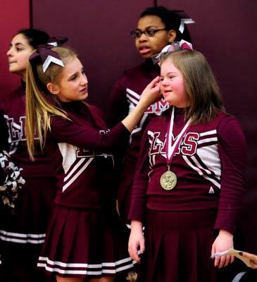 And then just before the game, all the players run over to her and give her high fives and fist bumps.