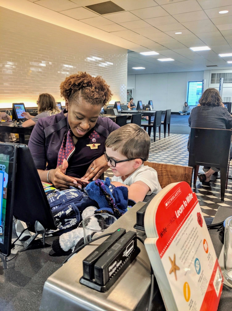 “On Saturday my wife, 4-year-old son and I flew from Minneapolis on Delta to JFK in New York to visit family. There was a flight attendant who really stood out. She was very outgoing, happy, and a breath of fresh air. She would check in on Charlie each time she passed by our row. We found out her name was Kesha. As shy as Charlie is, he even said goodbye to Kesha as we exited the plane.