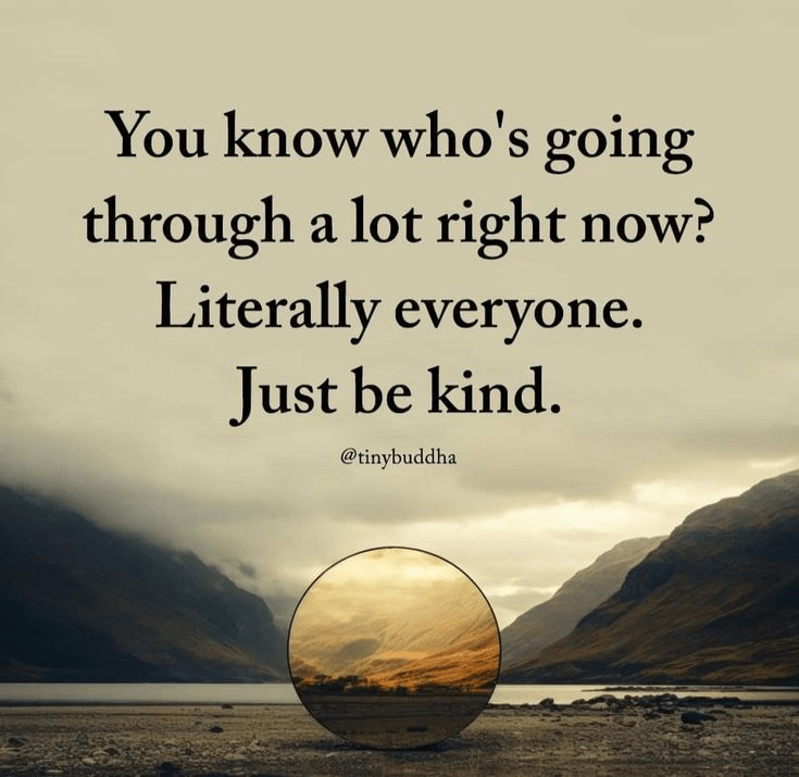 Don’t judge fellow humans because you’re not in their story. We all are in different mental states than we were months ago. So remember, Be Kind.